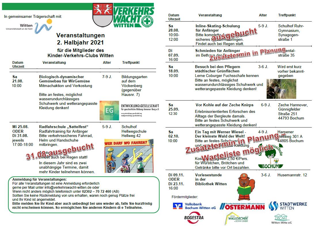 Der Inliner-Kurs und die Radfahrschule Sattelfest am 31. August sind bereits ausgebucht.